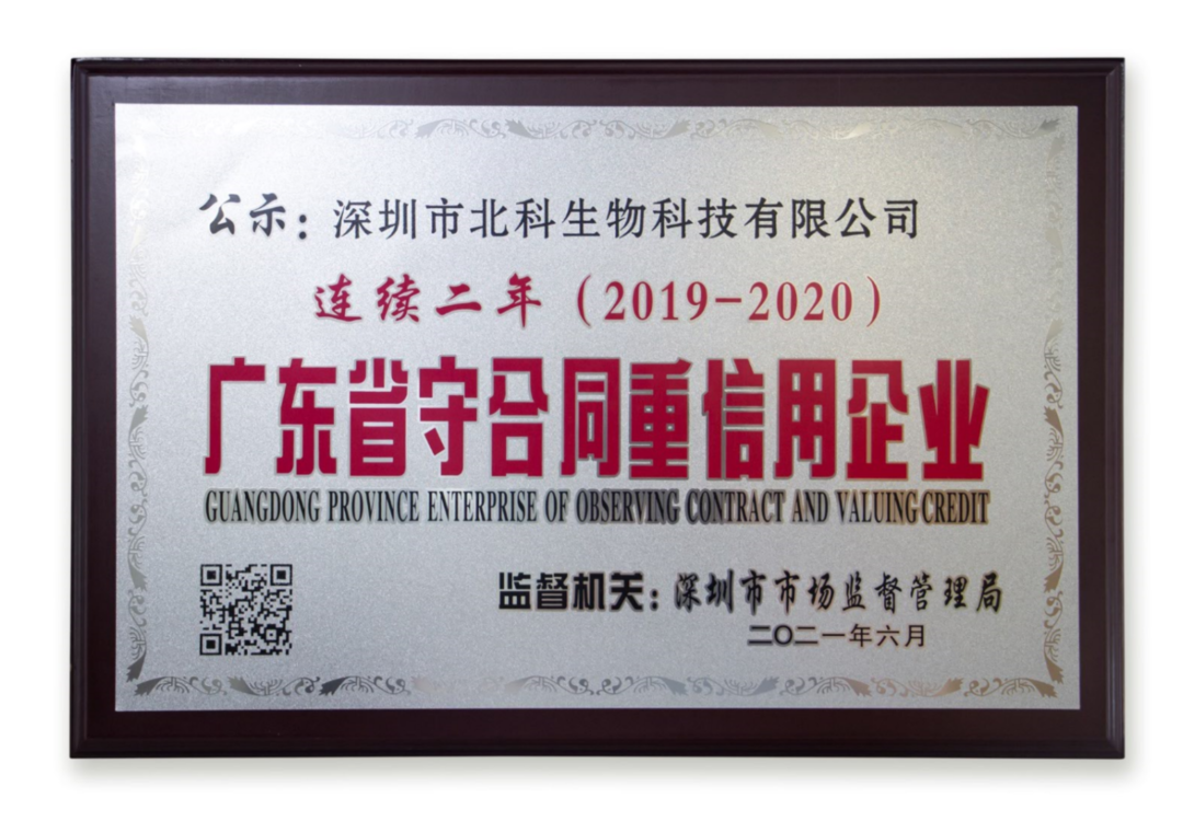 祝賀!北科生物連續(xù)兩年榮獲“廣東省守合同重信用企業(yè)”稱號(hào)