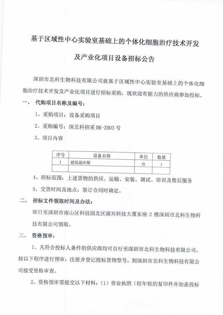 基于區(qū)域性中心實(shí)驗(yàn)室基礎(chǔ)上的個(gè)體化細(xì)胞治療技術(shù)開(kāi)發(fā)及產(chǎn)業(yè)化項(xiàng)目設(shè)備招標(biāo)公告