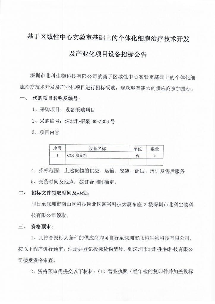 基于區(qū)域性中心實(shí)驗(yàn)室基礎(chǔ)上的個(gè)體化細(xì)胞治療技術(shù)開發(fā)及產(chǎn)業(yè)化項(xiàng)目設(shè)備招標(biāo)公告