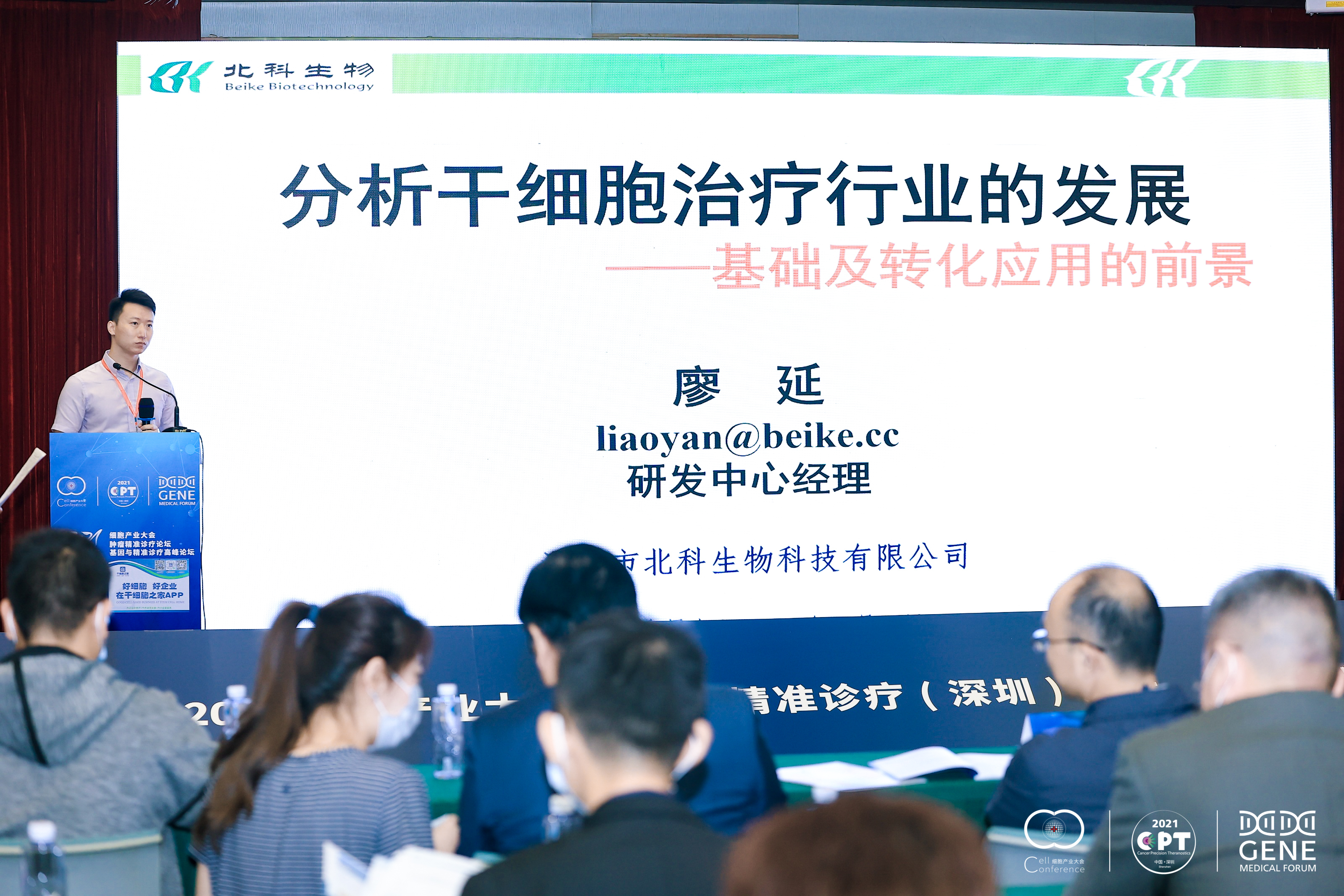 北科生物董事長受邀以語音連線的方式做專題演講,胡雋源博士提到,面對智能化、數(shù)字化時代的浪潮,在細胞研發(fā)技術(shù)創(chuàng)新、細胞生產(chǎn)標準化生產(chǎn)上,北科生物一直提倡智能化轉(zhuǎn)型之路,以人工智能和創(chuàng)新研發(fā)雙向驅(qū)動的北科生物正在朝著細胞產(chǎn)業(yè)制造、技術(shù)研發(fā)、臨床轉(zhuǎn)化等方面的智能化方向穩(wěn)步前進。北科生物研發(fā)中心經(jīng)理廖延博士也在峰會上圍繞“干細胞治療行業(yè)的發(fā)展——基礎(chǔ)及轉(zhuǎn)化應(yīng)用的前景”為主題進行了精彩的演講。