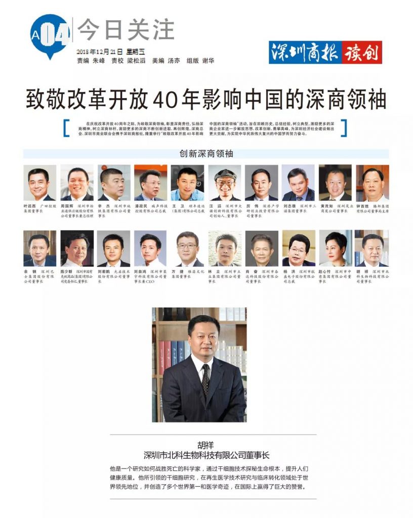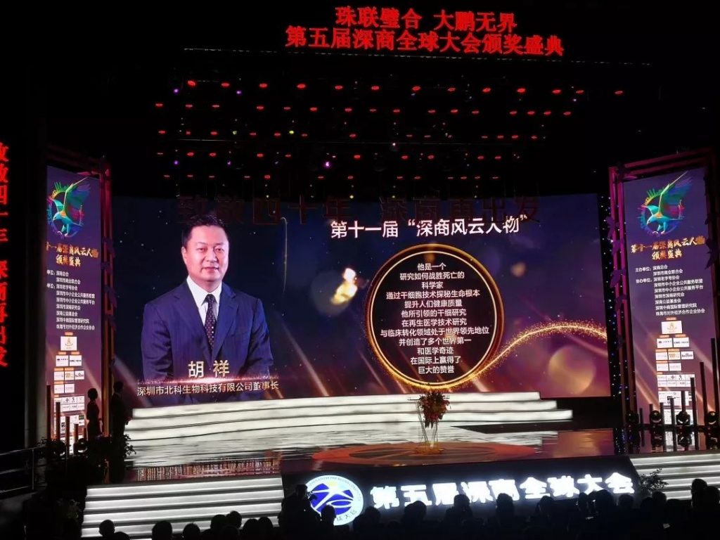 2019年1月14日,北科生物董事長胡祥博士參加第五屆深商全球大會頒獎盛典,榮獲2018年“第十一屆深商風云人物”